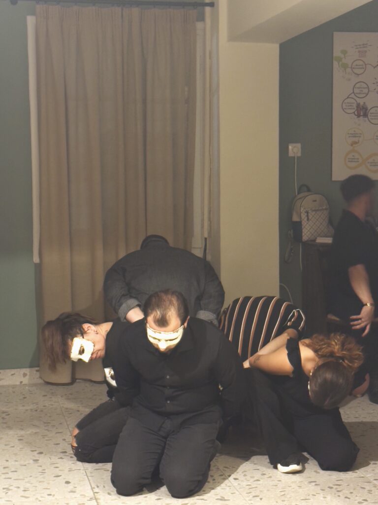 Συνδυάζουμε στοιχεία θεατρικού παιχνιδιού, κινησιολογίας και αυτοσχεδιασμού, σε εργαστήρια που βασίζονται στη φιλοσοφία: όχι για να υποδυθούμε κάποιον άλλον, αλλά για να ανακαλύψουμε κάτι πιο βαθύ από αυτό που δείχνουμε στην καθημερινότητα.